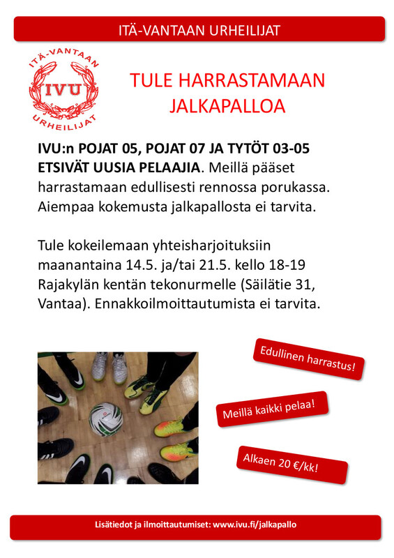 Ivu 05 ja 07 pojat etsivät uusia pelaajia. Samoin myös tytöt 03-05 kaipaavat vahvistusta joukkueeseensa! Tarkemmat tiedot mainoksessa.